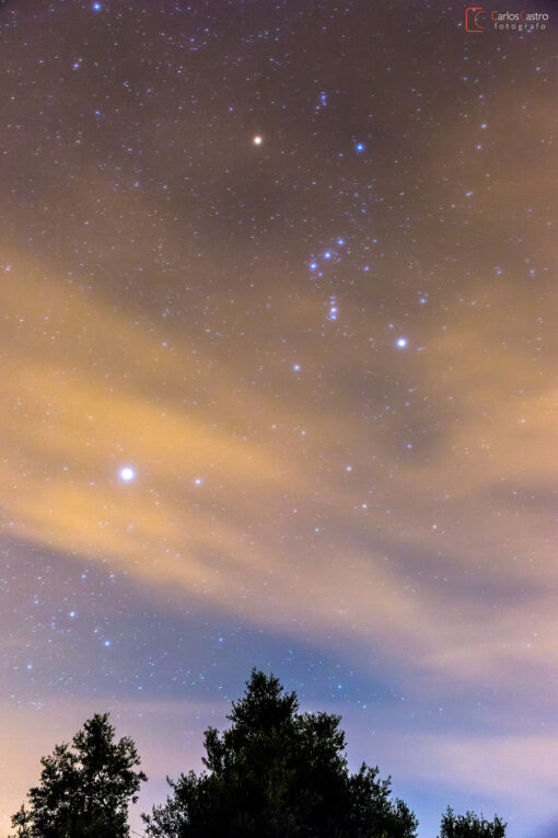 A la derecha esa estrella tan brillante es Sirio, la estrella más brillante del firmamento (ojo, no confundir la estrella más brillante del firmamento con el objeto más brillante del firmamento, cualquier planeta puede ser más brillante).